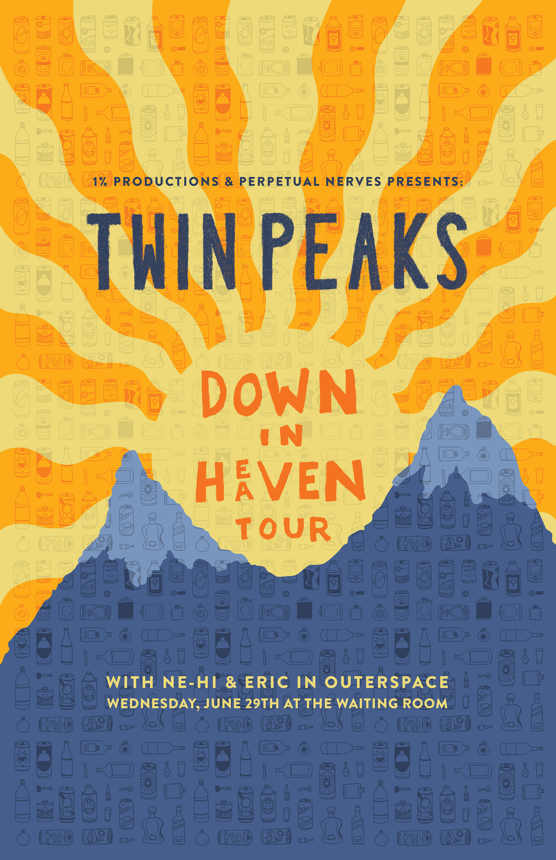 Chicago garage-rock outfit Twin Peaks released their record “Down In Heaven” on Grand Jury Records in 2016 and were on the road in support of it through late July. 1% Productions and Perpetual Nerves co-promoted their Omaha stop at The Waiting Room, and I'm excited to have had the opportunity to provide the poster artwork!